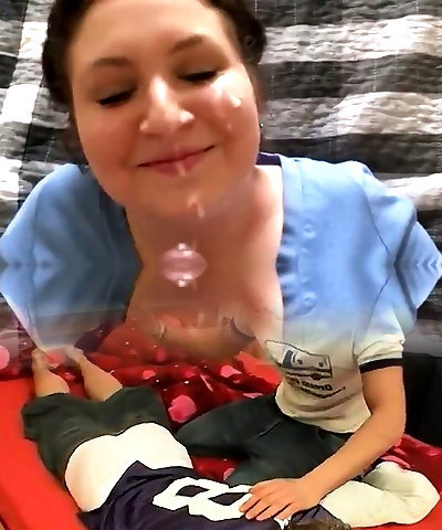 Mom helps her step-daughter to take faial jizz shot