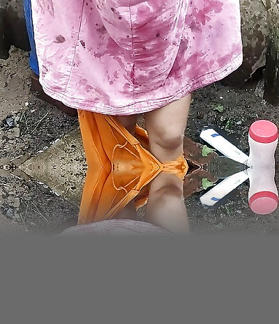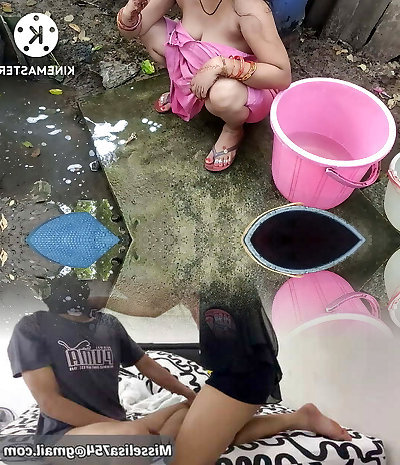 Indian house wife batihng outside