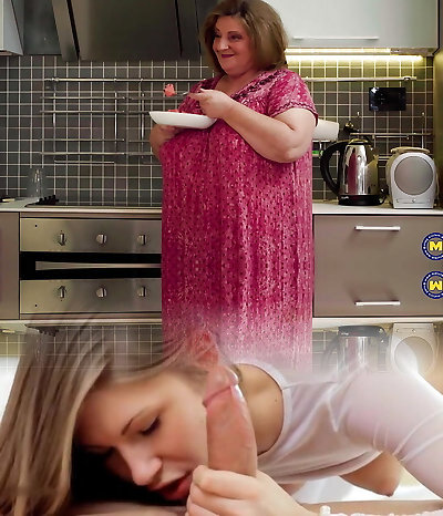 To tempt her neighbor naughty MILFie fatty fashes her giant saggers