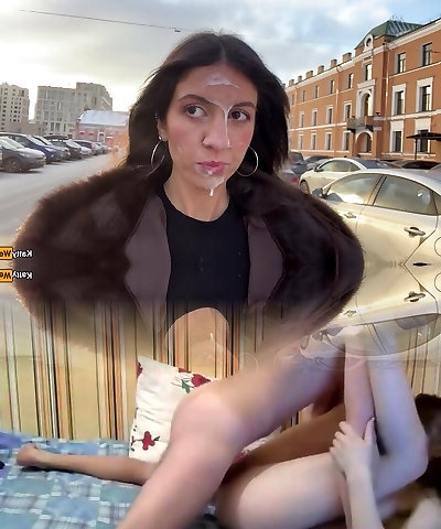 Pervy Russuan slutty honey Katty West jerk off a stranger in a car and got his spooge on a face