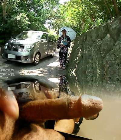 Kimono girl in a car sucks dick and gets fucktoy fuvked