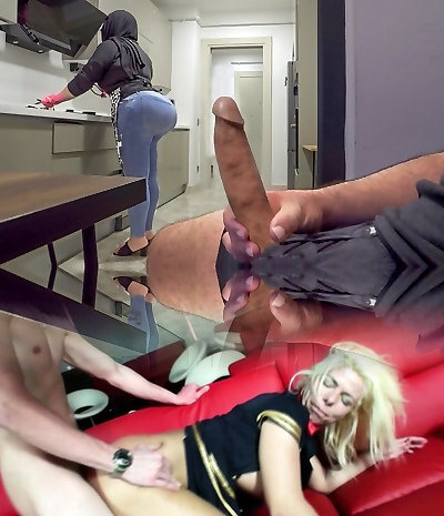 Risky jerk off while wathcing yam-sized bootie hijab stepmom in the kitchen.