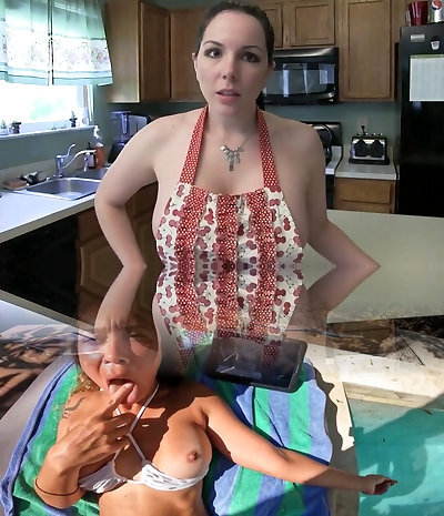 Big-chested Hi5tomi Tanaka gets hotly pummeled by a monster in the kitchen