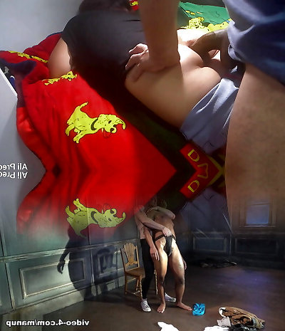 Naked Blonde babe Lilly Bella was smased by a Security Guard in Hostel room