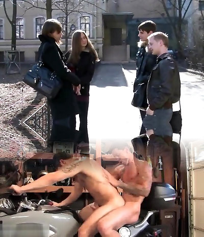 Hilarious blond teens take a chance to suck a heavy hot ane big cock (FFM)