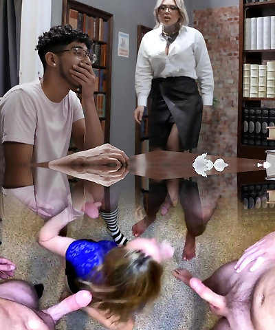 Mouth watering teacher Sarah Sheevon gets fucked by several college girls