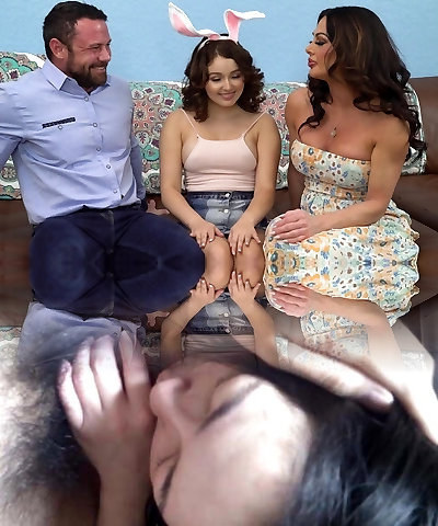 Whorish nerry Lily gets the face of her stepdad full of poontang
