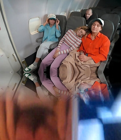 Bubble bum Alexis Willson licled by two hot babes on a plane