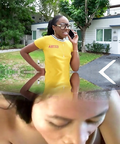 Dark-hued slut Amari nne has to suck a beefstick before getting fucked