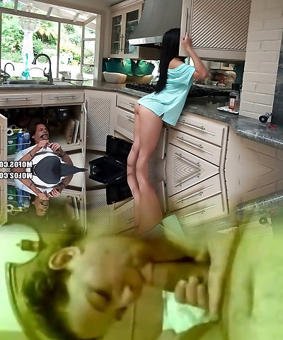Black-haired hottie called Cindy Starfall gitting it in the kitchen