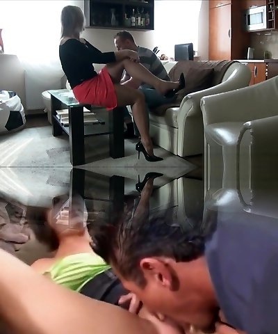 Lad Sonia makes sub lick her long gams