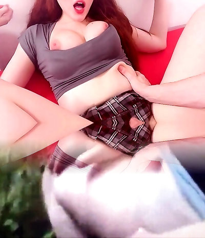 Pigtail wearing Chihnese tranny lifts up her skirt and shows her knob