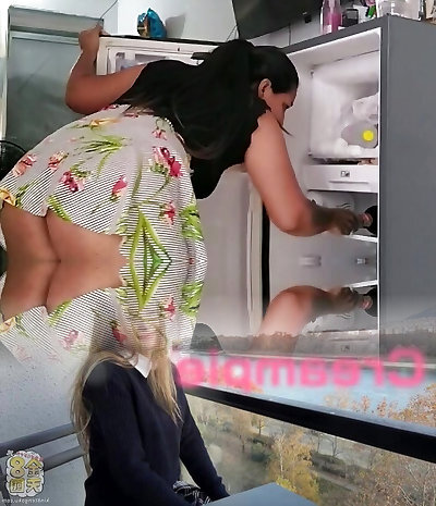 I deep-throat my stepmom's pussy in the kitchen. I fuck her ard and rich.