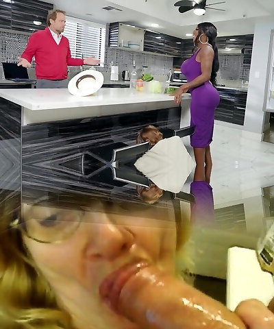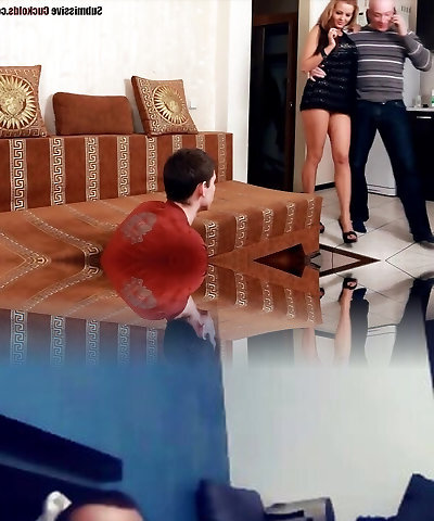 Cuckold hubby looks on as steaming wifey gets pounded with a fat cokc