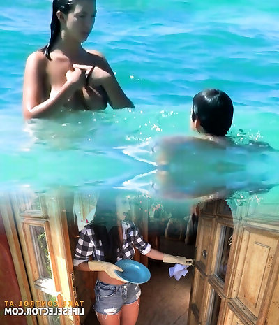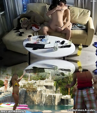 Voiyeur and poolside three-way